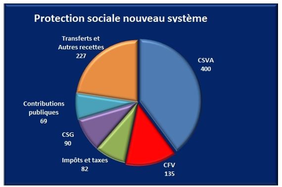 - 20 M€, réduction des frais de gestion de la protection sociale (URSSAF, réorganisation des Caisses …)